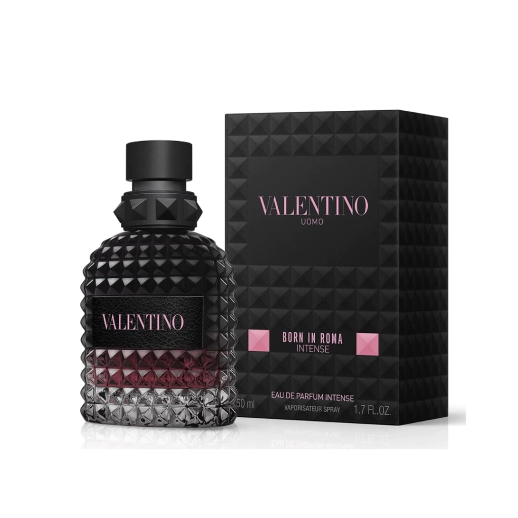 Valentino Born in Roma es una línea de fragancias de Alta Costura que celebra la cultura callejera romana, mezclando elegancia clásica con un estilo moderno y audaz. La versión femenina es floral ambarina con jazmín y vainilla Bourbon, mientras que la masculina es amaderada especiada, destacando vetiver, notas minerales y jengibre, ambas reconocidas por sus frascos con tachuelas icónicas.
